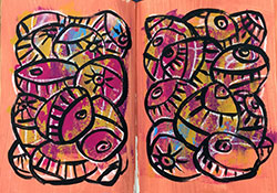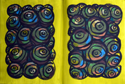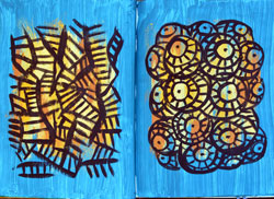 16 Skizzenbücher A3, die ersten 7 sind voll. Es mag manieriert scheinen, aber ich möchte erst die zu Grunde liegenden Erfahrungen sammeln, auch auf der Suche nach der richtigen Form und Pinselstrich, bevor ich mich auf die großformatige Malerei einlasse. |