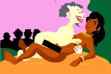 Eines morgens an den Domagktagen war ihm so langweilig, dass er sich schlafen legte, Fei, Elmar und Jo und andere gute Freunde, wir machten uns nochmal auf, das Gelände nach Parties und Leuten auf die man Lust hatte zu durchforsten. Im Osten kündigte/dämmerte das Morgenrot, als wir auf die Wiese Haus 35 kamen, da hörten wir aus einem Busch ein Jammern und Gefiebse, wir machten uns keinen Reim darauf, bis er uns nackt zugegen trat, der kleine, der so aussah wie Hitler, dem wie beim gestiefelten Kater die Kleider fehlten... in einem anderen Gebüsch erkannten wir Kristoff, der gerade der braun gebrannten, von oben bis unter die Scham gepiercten Domina die Vagina bürstete, im Vulgär Deutsch würde man sagen, er fickte! er zelebrierte, und Kristof, so erfuhren wir später, kam gerade rechtzeitig um mit einer Peitsche die Domina dem kleinen Hitler aus zuspannen, wobei er mit einem Krachen und Schnalzen der Schnur in wechselnder Weise in sie einfuhr und es ihr ganz besorgte, im Einklang mit der Amsel die dazu das Morgenlied pfiff,.. ![]() Zwei Tage später fuhr ich mit K. nach Paris, er hatte sich den Kopf halb kahl geschoren, eine Seite längerhaarig zerrupft, die andere kurzgeschoren aber mit nicht vollkommen abrasierten Inseln, er sah voll daneben aus, wie ein früher Urban Priol, 1998 , und so verhielt er sich dann auch gegenüber meiner Freundin und Familie, er versuchte wieder die gleiche Nummer abzuziehen wie in den Büschen, diesmal bei der Versprochenen des Bruders von Clemence eine bis dahin gute Freundin von mir in Paris, aber dort war es ihm dann doch eine Nummmer zu groß, sie verfolgten ihn und es war nur meiner Freundin sowie meiner Fürsprache zu verdanken, das er von der beleidigten Meute an Brüdern nicht verdroschen wurde... genervt hat er mich dann auch, er kam nicht mehr weg von seiner Nummer des einheimischen Exoten mit der Frisur (Bild von ihm auf Hotel-Balkon ), aber lustig war es trotzdem, wie sie ihn, ein Familien Clan verfolgte, und beinah den Garaus gemacht hätte, was ihm dann in Domagk widerfuhr wo wie um den MiniHitler mit der Domina im Busch zu rächen???,... er sich halb nackt dann mit Mike S.pike anlegte, der als Don Quichotte theatralisierte, auf einem Pferd von Deutschland nach Spanien ritt, der ihn wiederum nackt mit einer Helebarde durch das Haus 16 jagte und fast das ganze Stück zerquetschte. Kristoff performance, »ich weiss le alles « die er im Obergeschoß ausrichtete, den Gang entlang Sitze wie in einem Flugzeug , deren zwei Zuschauer Carla und Alex, Kristoff raffiniert, mit einem »vor dem Abflug bitte Anschnallen« mit Handschellen die er irgendwie vom Bundesgrenzschutz? herhatte, an den Sessel fesselte, das Flufzeug einen Flug mit allen Turbulenzen vollzog, und Kristoff ein fast nackter Kapitän mit meiner Kontrollmütze auf dem pünktchenweise rasierten Schädel, der ausgerastet aus dem Cockpit am Treppenaufgang ausgeklingt hinaus marschierte, die Mitfliegenden auf das Übelste beschimpfte, sich über den einen oder Erna sich lustig machte, den Zuschauern mit seinem Zappeln und Gefuchtle zweier Skistecken fürchterlich« im wahrsten Sinne, immer wieder kam er bedrohlich nahe, ein Männchen eigentlich, vor dem man sich jetzt fürchten musste, auf die Nerven ging, Carla und Alex konnten aber an die Stühle gefesselt nicht den Gang nicht verlassen, so fing Carla voll hysterisch zu schreien an, sie war die erste die » ey Kristoff hör auf da mit deinem verkackten Scheissss, was soll daAs... ich will raus hier« betrunken getunt schräg-schnäuzig mit Hass im Blick schrie sie heraus » du Arschloch, verpiss diiich!!!!« ...und Alex, der am Morgen grundsätzlich nicht grüsste, und als Antwort auf Jos Anfrage man grüßt sich eh schon zuviel, mit einem gegrummelten Brummen, antwortete und jetzt mit tiefer Stimme ganz ruhig ätzte »spinnst du? was soll daß? « und dabei bedeutungslos seine Faust krümmte, und der Robert aber, die kleine Kellerassel, der den Förg mit Katalog geklaut hat, ebenso seine Zeichnung die er mit den Worten »die ist einmal viel Geld wert Schaaaatzi« in zwei Sekunden hingepinselt hat, schoß den Vogel ab... das Flugzeug kam ins Schlingern... Robert nahm den Stuhl auf dem er saß, und schleuderte ihn mit einem Schrei auf polnisch nach Kristoff den er, weil der sich wegduckte verfehlte, dafür traf er die betrunkene Katharina, die in der letzten Reihe im Dunklen ihren Rausch ausschlief, die getroffen sich nur wegdrehte, ihre Position wechselte und nach einem Grunzen irgend etwas auf polnisch antwortete und weiter schnarchte. Ich hatte vorne und hinten nichts verstanden, zumal im Garten vor dem Haus Kristoff dann mit einer großen Papierrolle 80m, deren drei er zur Verfügung hatte und die er mit einem Malerpinsel schwarz und rot aufs Papier die Bäume mit seinen riesengroßen, ich glaube mich zu erinnern: ornamentalen Pinselzeichnungen den Garten aus dem Haus raus dekorierte... auf einer Leiter auf seiner Gitarre wie Troubadix, dem er auch ähnlich sah, ein schräg gesungenes Lied zum Besten gab, wobei er die Gitarre wobei er ganz schnell seine Hand auf und abwirbeln lies und spielte, das Ohr ganz nah dran... und, was mein Aufnahmevermögen übersteigerte...ich nicht wußte »spinnt der? « der das Papier anzündete, die Bahnen Papier brannten haushoch lichterloh und Klaus das alte Klavier vom Kasino Haus 16 auf die Terasse rumpelte, das wie er meinte, nur zwecklos rumstand und ins Feuer schmiss, das mit einem grandiosen »ZoOong« knallte und krachte und knisterte, hin und wieder ein mehr oder minder Zooong, und ein Knistern einen Klang den ich zur Tonverarbeitung gerne eingefangen hätte, aber Klaus mich auf die Aufnahme nicht vorbereitet hat. Ein Todesschrei eine letzte Synphonie eines verbrennenden Klavieres und ich mich fragte »ist das genial? aber ich verstehe nichts« oder » genial poetisch der Kristoff: Zuerst schreit er, dann fesselt er, fordert provokativ eine Reaktion vom Publikum, welches schreit, macht da