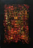 Dann sagte ich ihr noch... ich weiss nicht wie weit die Worte noch eindrangen, aber ich sagte ihr, daß "wir uns seit dreiundzwanzig Jahren... im letzten Vierteljahr ihres Lebens..., daß da eine Freundschaft mit einer Intensität entstanden ist, die mir ungeheuer wichtig" ist, daß ich sie "... jeden Tag besuchen komme, bis zum Ende", es war mir ein Bedürfnis... " und ausserdem das Kunstwerk... aus der Serie » im Netz der Häuser«, das möchte ich dann schon gerne wieder mitnehmen..." ich hob das Bild, das »Haus« von der Wand, zeigte ihr das von mir gepinselte Bild, keine Reaktion "vergiß deinen Auftrag nicht, den Nobelpreis, du bist mir was schuldig...",