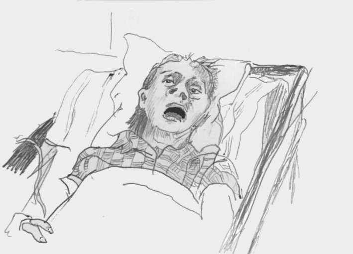 ... wie lange so noch existieren... halb im Jenseits schon, ...bis zum letzten Moment da zu sein, ihren Mund offen, wie ein Schlund, ein Rohr das atmet, das Atmen eine Metapher für das Leben, nur so lange sie atmet, ...und ich ein nichts erbender um sie rum schleichender Erbschleicher, Atmen ... bis das Herz still steht...