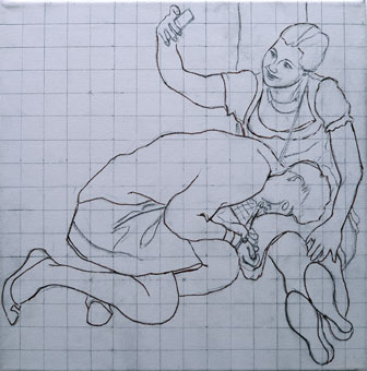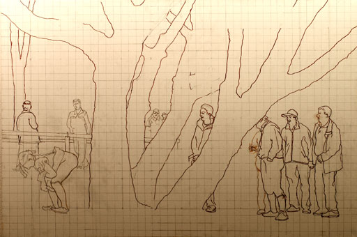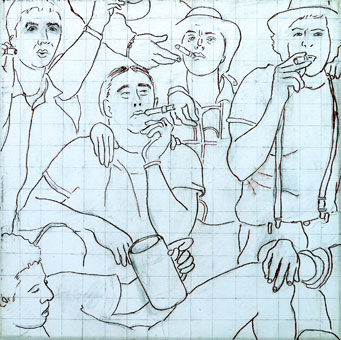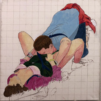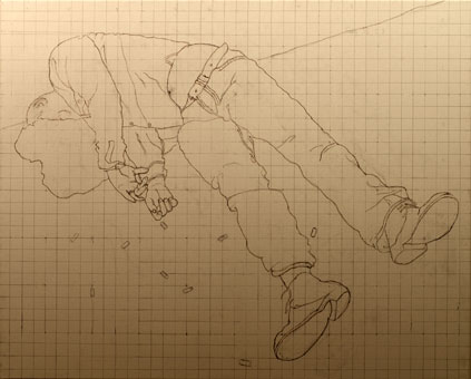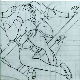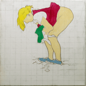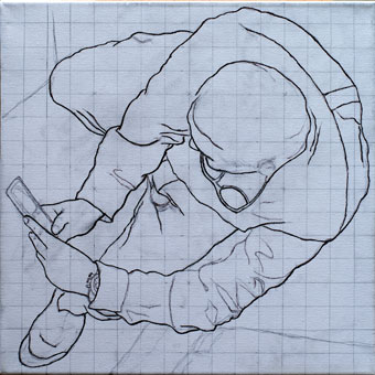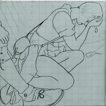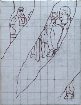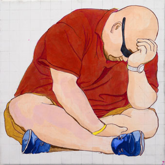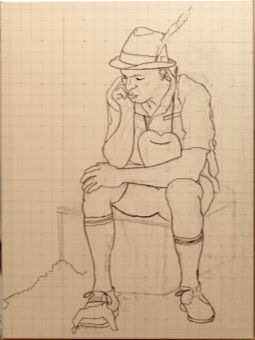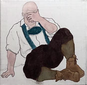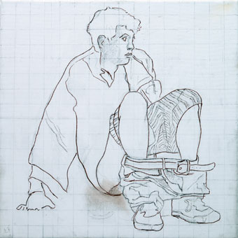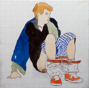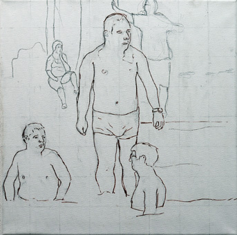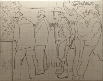 Jüngling auf Kacka im Pfuhl hinterm Klo, Studie, 40cm x 40cm |