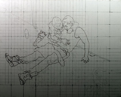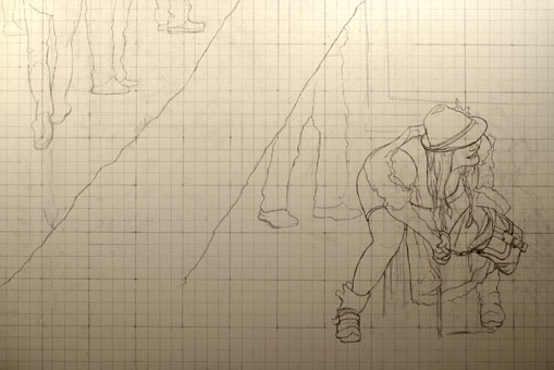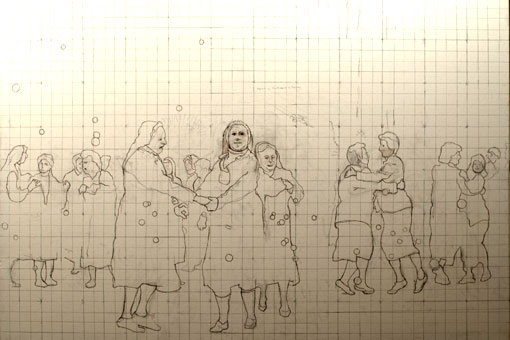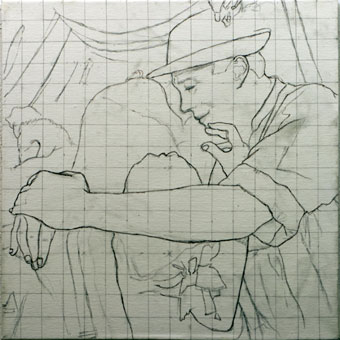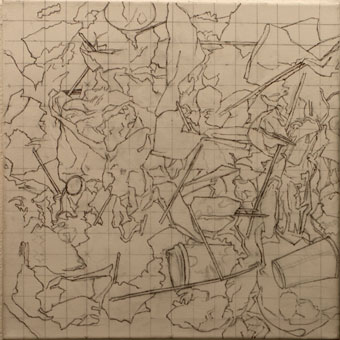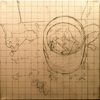 Eisbach, Vorzeichnung, 40x40cm