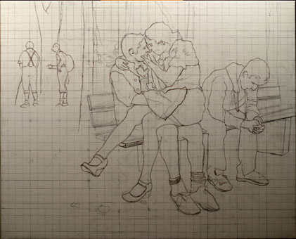 Auf der Bank am Eingang zum Bieslwäldchen, 100cm x 80cm |