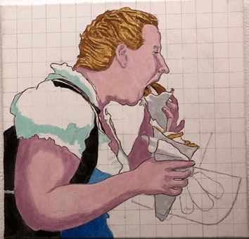 Fischsemmel mit Pommes und Mayo, Studie, 40x40cm |