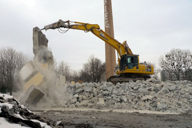 Der Nordflügel von Hs50 spiegelt sich auf dem Chromglanz des Flügels