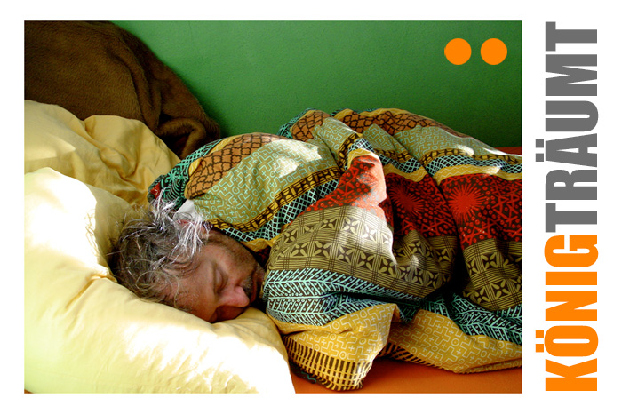 mit seiner Kunst auf einen verhärteten Hippie-Lumpen-Klumpen,