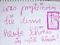 die Beichte ... hihihoho der so in die Welt gepflutschte Protagonist dieser Geschichte klopfte gestern an lutzilis Atelier und herein kroch ein Männlein- genannt "Zausel, oder es verletzender noch: das Zerzauste, schlimmer noch: das breitspurig Zerzauste" wohlwollende nennen ihn den gestriebsten Striebs- auf allen Vieren zu lutzili hin und bedeutet diesem, er wolle mit ihm reden, er müsse was beichten, sich erleichtern, in seiner von Fliegen umschwirrten Seele sei klägliche Kakke am Dampfen... er sei, fing er an zu erzählen, "gegenüber im Parkstadtcenter einkaufen gewesen, erst Bilder drucken, dann REWE, dann mit voller Tasche noch schnell zum pennny, 6-pack Billigmineralwasser. An der Kasse saß eine indianisch mexikanische Guatemalaerin im prachtvoll mit gelben Saum an den Ärmeln versehenen federschmuckroten Arbeitsgewande, sah auf die prall gefüllte Tasche und fragte pflichtbewusst kontrollierend mutig mit nostalgischem Klingelkassenblick: "waren Sie einkaufen?... haben Sie Kassenzettel schonn dabei?" wie aus einer Rakete schossen dem bösen Blick der Stecknadelblickenden Minipuppilen zwei Bebrillte Knöpflein unter wirrem spitzem Haar, fiel einem schwarzen Münchner Krähenschwarm gleich auf die Frau darnieder und sprotzte fies: "Wollen Sie mich hier kontrollieren?????????" das Männlein sitzt da und schluchtzt "und dann" fährt es gestimmt auf Fistelstimmlein fort : "dann antwortete die zusammengezuckte Kassiererin, " ja muss ich machen...," und das Zausel schimpfte "ich seh wohl aus wie ein Dieb oder? "packte grummlig sein Zeug und lies sich, misstrauisch die aufgeregte Kassiererin beäugend, das Geld in die extra freigemachte Hand rausgeben... und ging, und im gleichen Moment schon erkannte das Männlein, "Sie hat ja recht die arme Frau" , es verständnislos fragte, was denn da für eine Qualle aus ihm herausgehüpft sei, mit Gallengift auf den Tentakeln und spritzte... das zerzauste, von weitem schon als Silhouette an dem Zaus zu erkennen bitttet lutzili um Beichte, um der Seele Frieden willen, Was tun??? Die Indianerin, wahrscheinlich auch Mutti mit sieben Kindern machte doch nur ihren Job, das 4-äugige zerzauste Zausel bedauert es, "so schlechte schwarze Energien" auf diese "arme kleine Frau zu geschleudert zu haben.... " das lutzili mutiert zum Priester wie es denn weitergeht liebe Gemeinde erfahrt ihr heute abend, da trieffen sich Priester lutzili und das Männchen in später Stunde neben dem Tempel an der Tempelbar Fortsetzung folgt: