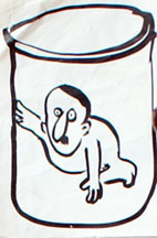 --- Sackmastmanifest gegen die immer - weil von jungen Künstlern - "junge Kunst" Verherrlichung : ---- ein Wissenschaftler aus dem Publikum: " die zu vernetzenden Synapsen. liebe Freunde, müssen sich doch vor deren Verfall im Leben erst mal bilden..." ein Pessimist: " der geht doch ab dem 20.ten schon los! und ab 30 hat man die Fortpflanzung, den einzigen Sinn und Zweck im Leben eh schon erfüllt, und kann getrost abtreten..." der Kiffer: "nNnggzzz nNngzzzz nNgzzzz" krakeelende Stimme aus dem off: "zum Glück gibts hier Augustiner Bier!" der Kiffer euphorisch: "hi hihih ihihih hiiiiii" krakeelende Stimme aus dem off: "heute einen Kasten Bier!" der emphatische Weiner mit pathetischem Griff zum Telefon: "Polizeiiiiiiiii" |